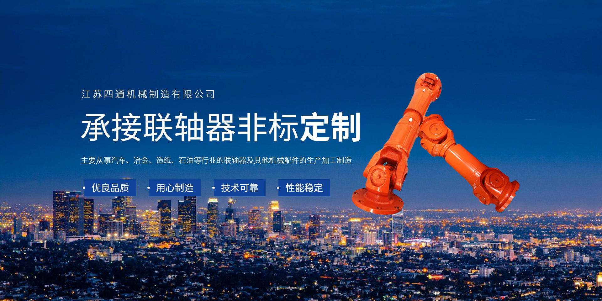 江蘇四通機(jī)械制造有限公司主要從事汽車、冶金、造紙、石油等行業(yè)的聯(lián)軸器及其他機(jī)械配件的生產(chǎn)加工制造,產(chǎn)品廣泛應(yīng)用于冶金行業(yè)(十字萬向聯(lián)軸器、鼓形齒式聯(lián)軸器、球籠式萬向聯(lián)軸器、導(dǎo)衛(wèi)裝置、鋼管頂頭);電力行業(yè)(耐熱耐磨鋼);船舶、機(jī)車、工程機(jī)械(混凝土泵車、挖掘機(jī)、壓路機(jī)、傳動(dòng)系統(tǒng));包裝機(jī)械、公司已有多年的研發(fā)和制造經(jīng)驗(yàn),具有研發(fā)高新精產(chǎn)品和批量生產(chǎn)的優(yōu)越條件及強(qiáng)大優(yōu)勢。公司實(shí)現(xiàn)了ATUO CAD計(jì)算機(jī)輔助設(shè)計(jì)和信息化管理,集研究制造為一體,有豐富的制造經(jīng)驗(yàn)和雄厚的技術(shù)力量,檢測手段完善、品種規(guī)格齊全、質(zhì)量穩(wěn)定可靠,能滿足不同客戶的訂貨需求,產(chǎn)品具有質(zhì)量優(yōu)良、性能可靠,維護(hù)方便等特點(diǎn),深受廣大用戶的信賴。公司位于江蘇江陰經(jīng)濟(jì)開發(fā)區(qū)靖江園區(qū)內(nèi),緊鄰南京、揚(yáng)州、常州、無水陸交通十分方便。我司座落在黃金水道的長江之濱,位于雄偉美麗的江陰長江大橋北岸,東臨京滬高速公路,北臨寧通公路,與上海、蘇州、無錫、南京等城市相鄰,地理位置優(yōu)越,水陸交通十分便利。 公司主要產(chǎn)品為“冶金軋制設(shè)備、石油機(jī)械、橡塑機(jī)械、鋼管設(shè)備、造紙機(jī)械、汽車傳動(dòng)、紡織機(jī)械、破碎機(jī)、新能源傳動(dòng)”、SWC、SWP型萬向聯(lián)軸器、導(dǎo)衛(wèi)裝置等各類非標(biāo)機(jī)械加工。公司加工過程精益化,管理過程網(wǎng)絡(luò)化、信息化。產(chǎn)品出口美國、韓國及東南亞國家和地區(qū)。公司技術(shù)力量雄厚,采用CAD和proe計(jì)算機(jī)系統(tǒng)進(jìn)行開發(fā)設(shè)計(jì),有相當(dāng)強(qiáng)的新產(chǎn)品開發(fā)能力,通過ISO/TS16949認(rèn)證,有完善的質(zhì)量保證體系。我們鍥而不舍,將長期致力于產(chǎn)業(yè)的提升,我們忠于使命,將質(zhì)量和服務(wù)放在首位。熱忱歡迎國內(nèi)外新老客戶來我公司視察指導(dǎo)工作、商洽、投資、合作!